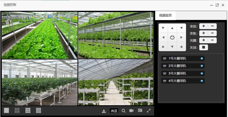 智能攝像頭作為數據信息的有效補充,基于網絡技術和視頻信號傳輸技術,對農作物生長狀況進行全天候視頻監控。該系統由網絡型視頻服務器、高分辨率攝像頭組成,網絡型視頻服務器主要用以提供視頻信號的轉換和傳輸,并實現遠程的網絡視頻服務。可以根據用戶權限進行遠程的圖像訪問、實現多點、在線、便捷的監測方式。可以實時查看農場內安全狀況和農作物長勢。
