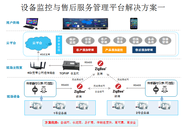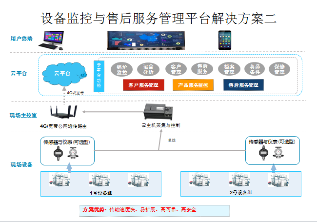 但是以上各個單機設備有個弊端就是設備之間不能進行友好互動,不能進行數據交互,公司管理層人員無法準確掌控到現場設備的實際運行動態,不知道設備的運行時間和故障時間,不能提早發現設備存在隱患,所有只有當出現了問題才能發現設備不能工作,然后才有維修,這個過程也大大影響了公司正常生產運營的效率,對公司人員和財產以及生產質量都是一個很大的損害,降低了企業的生產效率,出現問題的只能整天忙于處理故障,對設備沒有及時有效的維護和管理。